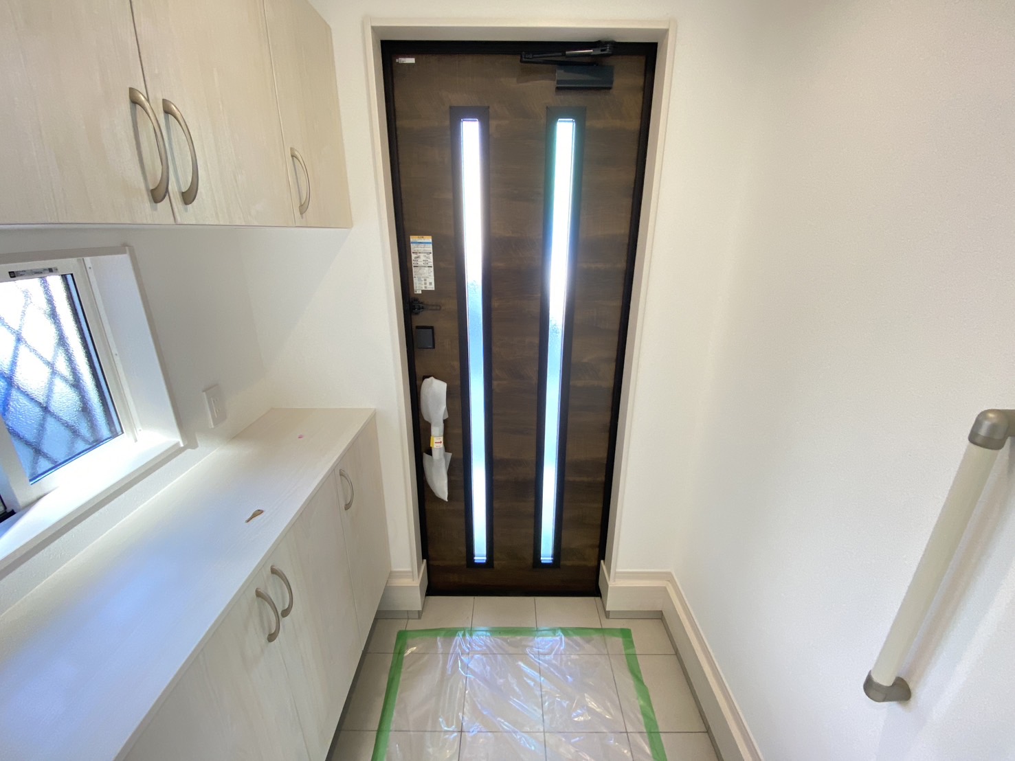 白を基調とした建具に光が差し込むので、電気をつけなくても明るい玄関です