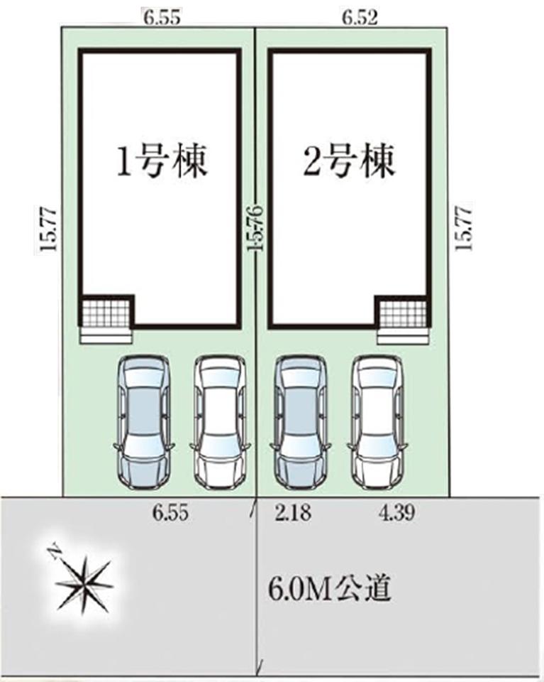 2号棟 ウォークインクローゼットやパントリーなど収納豊富な4LDK! 家事導線も配慮された間取りです! カースペース並列2台可能! 南西向きにつき陽当たり良好! 前面道路も6mと広く開放的な立地!