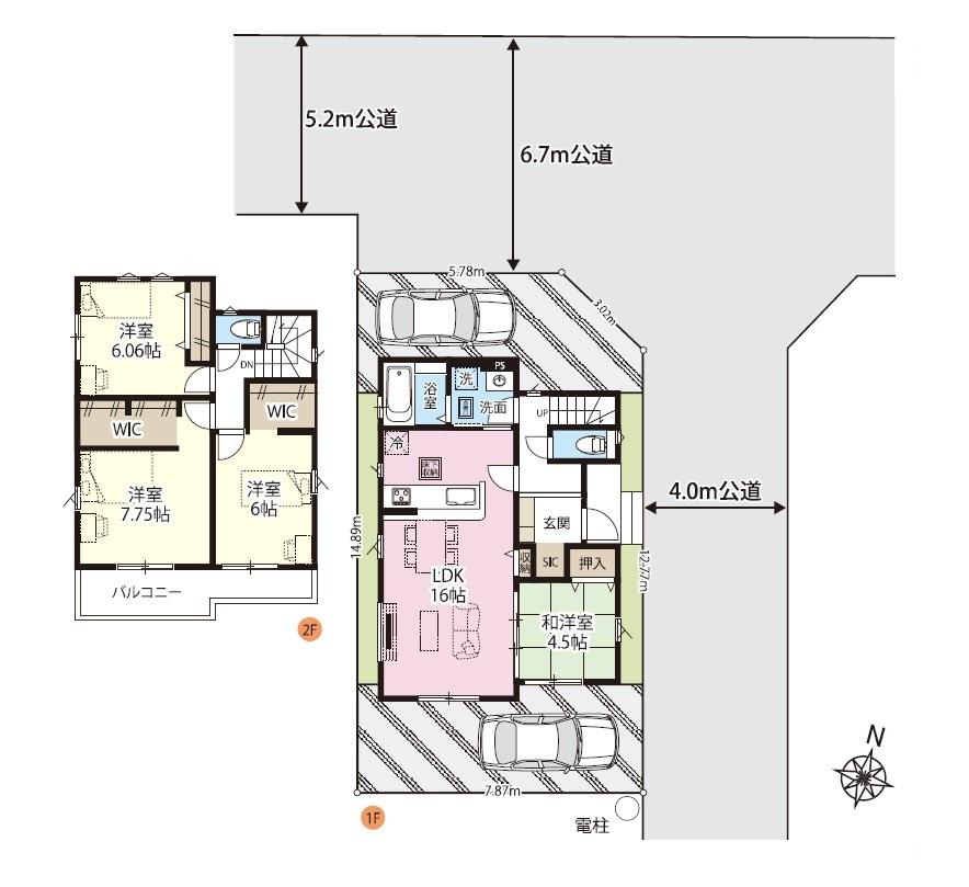 - 北側6.7m公道 ,東側4m公道