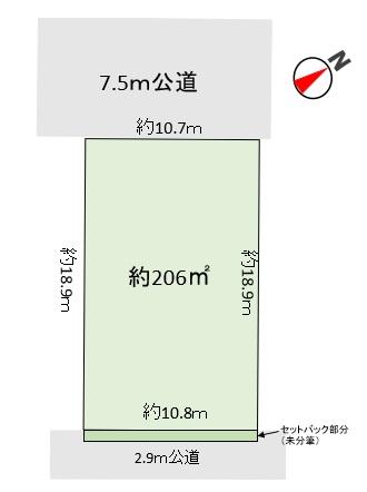 - ・公簿売買 ・測量売主負担 ・南東側要セットバック(約12平米) ※未測量の為、おおよその数字になります。