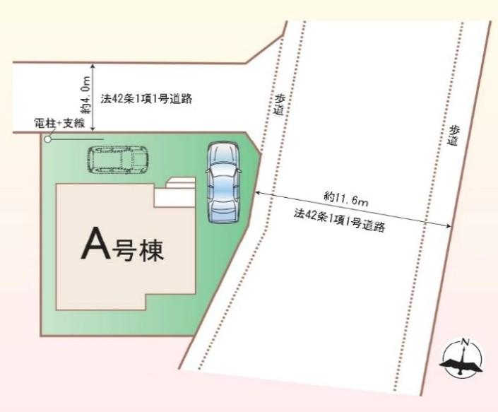 - 北東側11.6m公道 ,北西側4m公道