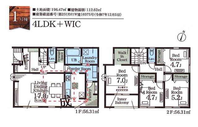 【仲介手数料無料!】新築住宅がお得に買える・埼玉相互住宅では新築購入仲介手数料が無料・スーモ・アットホーム・ホームズなど各不動産情報サイトに掲載している越谷市・川口市・草加市・八潮市・春日部市・松伏町の新築物件情報の95%が仲介手数料無料です。 全居室に収納がある4LDK・WIC・パントリー!キッチン・洗面・浴室がまとまった水回り動線で、家事の移動もスムーズです!駐車スペース2台可(車種による)!新里小学校まで徒歩約2分(150m)!