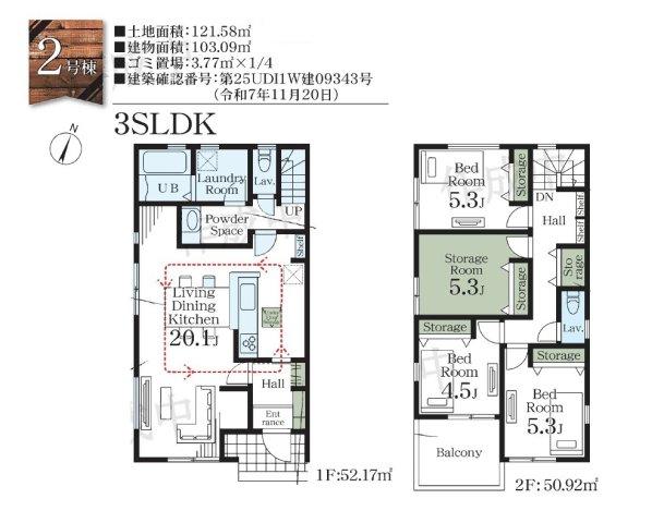 【仲介手数料無料!】新築住宅がお得に買える・埼玉相互住宅では新築購入仲介手数料が無料・スーモ・アットホーム・ホームズなど各不動産情報サイトに掲載している越谷市・川口市・草加市・八潮市・春日部市・松伏町の新築物件情報の95%が仲介手数料無料です。 2号棟 南東向きバルコニーで陽当り良好!全居室に収納がある3LDK・納戸!広々20帖のリビング空間!キッチン・洗面・浴室がまとまった水回り動線で、家事の移動もスムーズ!駐車スペース2台可(車種による)