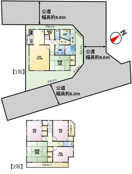 - 北西側4m公道 ,北東側4m公道 ,東南側6m公道