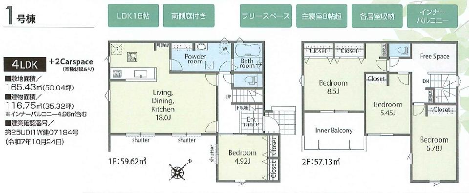 - ・建物面積:116.75平米(インナーバルコニー4.96平米含む)