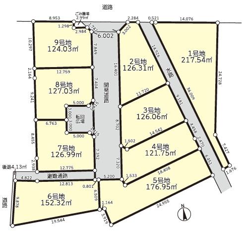 - ※本物件は、土地売買契約締結後3ヶ月以内に売主の指定する建築業者と建物の建築請負契約を締結することを条件に販売します。この期間内に建築請負契約が締結されなかった場合は、土地売買契約は白紙となり、受領した手付金等はすべてお返しいたします。 ※1~9区画ごみ置場面積・持分有:2.99 ×1/9 ※2~9区画私道面積・持分有:212.55 ×1/8+37.01 ×1/8+35.12 ×1/8