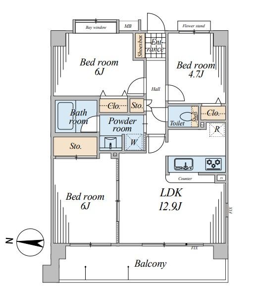 ペット飼育可(細則有)の3LDKマンション。約12.9帖のLDKを中心に使いやすい間取り設計で、全居室収納付き。大切なペットと一緒に快適な暮らしが叶います。