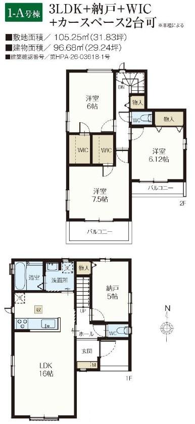 【仲介手数料無料!】新築住宅がお得に買える・埼玉相互住宅では新築購入仲介手数料が無料・スーモ・アットホーム・ホームズなど各不動産情報サイトに掲載している越谷市・川口市・草加市・八潮市・春日部市・松伏町の新築物件情報の95%が仲介手数料無料です。 A号棟 南向きで陽当り良好!全居室に収納がある3LDK・WIC×2か所・納戸!キッチン・洗面・浴室がまとまった水回り動線で、家事の移動もスムーズです!駐車スペース2台可(車種による)!