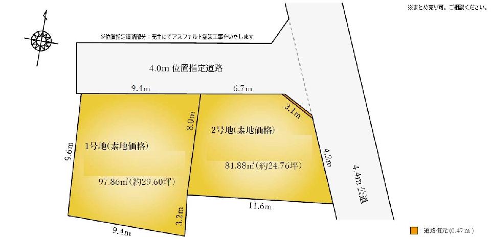 - 北側4m私道 ,東側4.4m公道